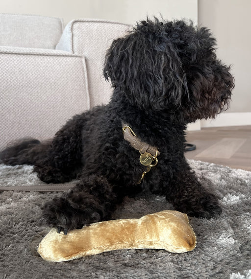 The Royal Taupe dog collar is made of genuine, high-quality leather. The gold details make this collar a real eye-catcher for your Doodle. Availab...